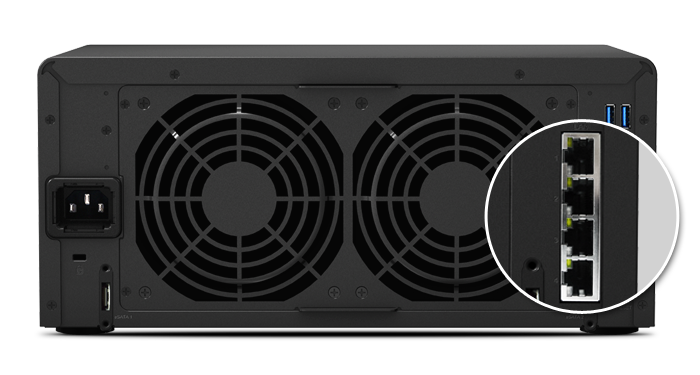 DS1815+ 內建支持故障移轉及 Link Aggregation 的四網絡埠,在其中一個網絡埠故障的狀況下,仍可讓聯機繼續(xù),幫助降低服務中斷的可能性以及因停機所造成的昂貴成本。此外,Link Aggregation 充分發(fā)揮四網絡埠的優(yōu)點,可提升連接速度,突破單一網絡線或網絡埠的速限。