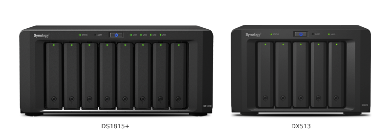 當數據存儲空間需要擴充時,DS1815+ 可連接至其專用的擴充設備 DX513,以省力的方式快速擴充存儲容量。DS1815+ 可通過特別設計的 eSATA 傳輸線和兩臺 DX513 擴充設備2搭配使用,總存儲容量可以高達 180TB3。