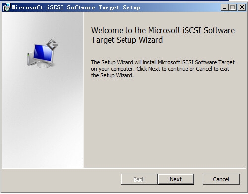 加載iscsitarget.msi鏡像,打開(kāi)軟件開(kāi)始安裝