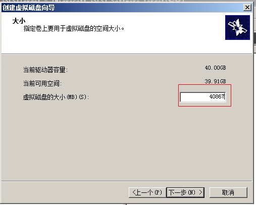 輸入虛擬磁盤(pán)容量大小,然后下一步